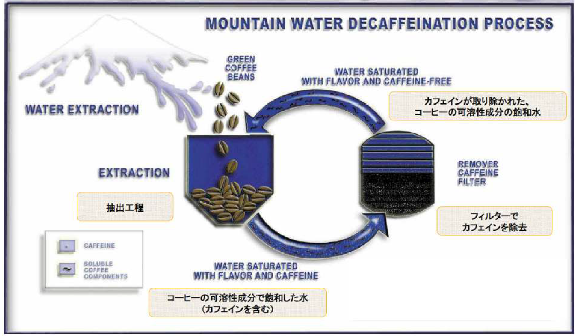 カフェインを取り除いた後の成分を再度豆に戻すウォータープロセス製法なので、普通のコーヒーと何ら遜色のない風味豊かな豆に仕上がるのが特徴。薬品などを一切使用していないのも安心です。