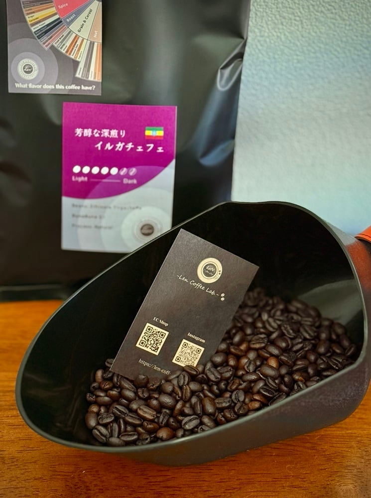 <<新しく深煎りをご用意しました。深くしっかり熱を入れると酸味は和らぎ、独特のボディ感と旨味が凝縮され、浅煎りとは別物のコーヒーが出来上がりました。そして鼻から抜けるイルガチェフェ特有のブドウのような余韻は深煎りにしても健在で、一般の深煎りとは一線をなすスペシャルな深煎りコーヒーに仕上げています。>>